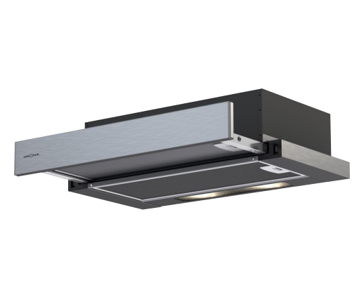 - Режим работы. Современные полновстраиваемые вытяжки работают в двух форматах. Первый – отвод, требующий подключения устройства к системе вентиляции и предполагающий выведение воздушной массы наружу вместе со всеми её примесями. Второй вариант – рециркуляция (циркуляция), при которой происходит фильтрация, то есть очистка воздуха: он проходит через угольный и алюминиевый жироулавливающий фильтры, а потом возвращается обратно на кухню.